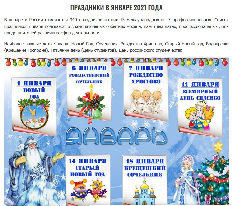 Праздники месяца январь