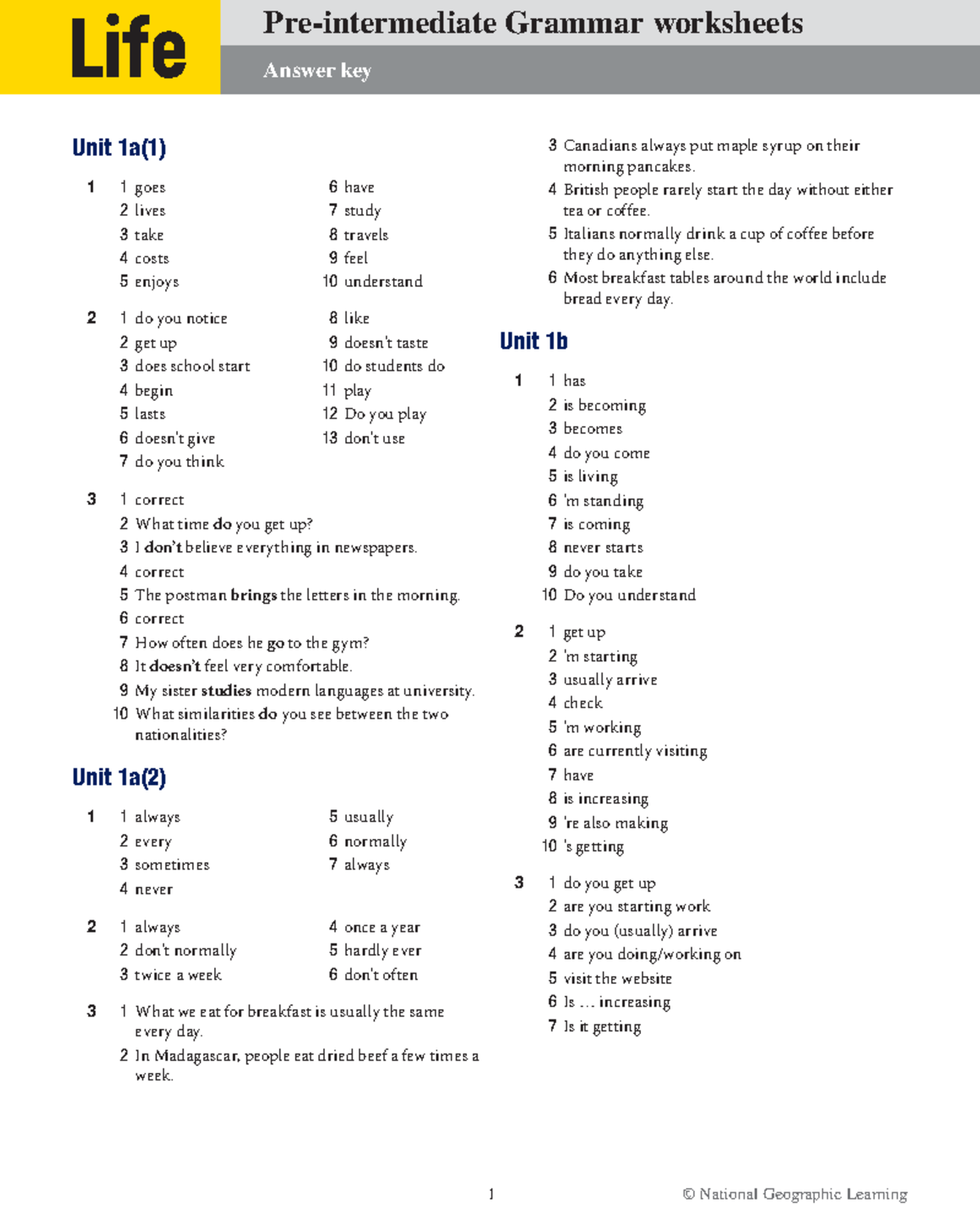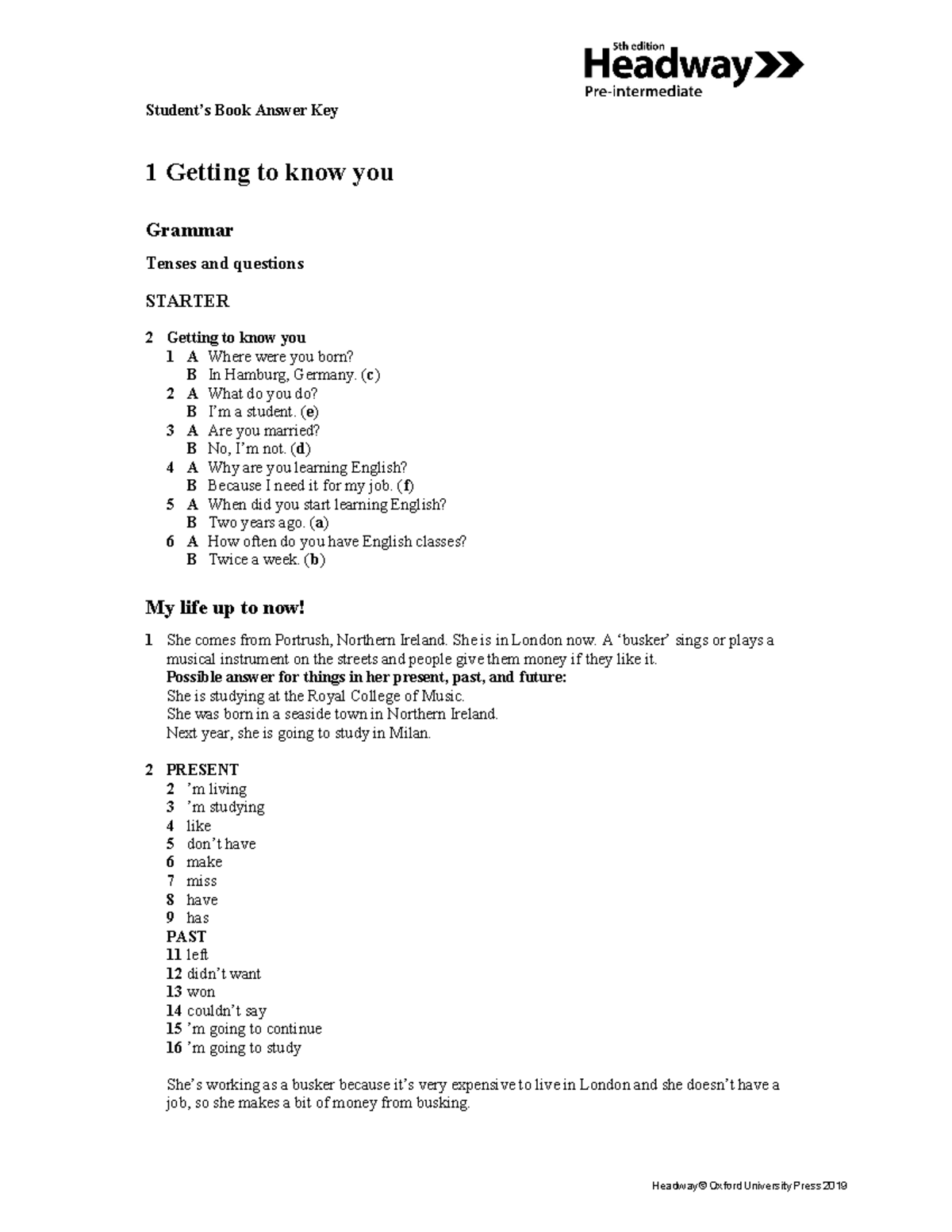 Pre intermediate students book answer key