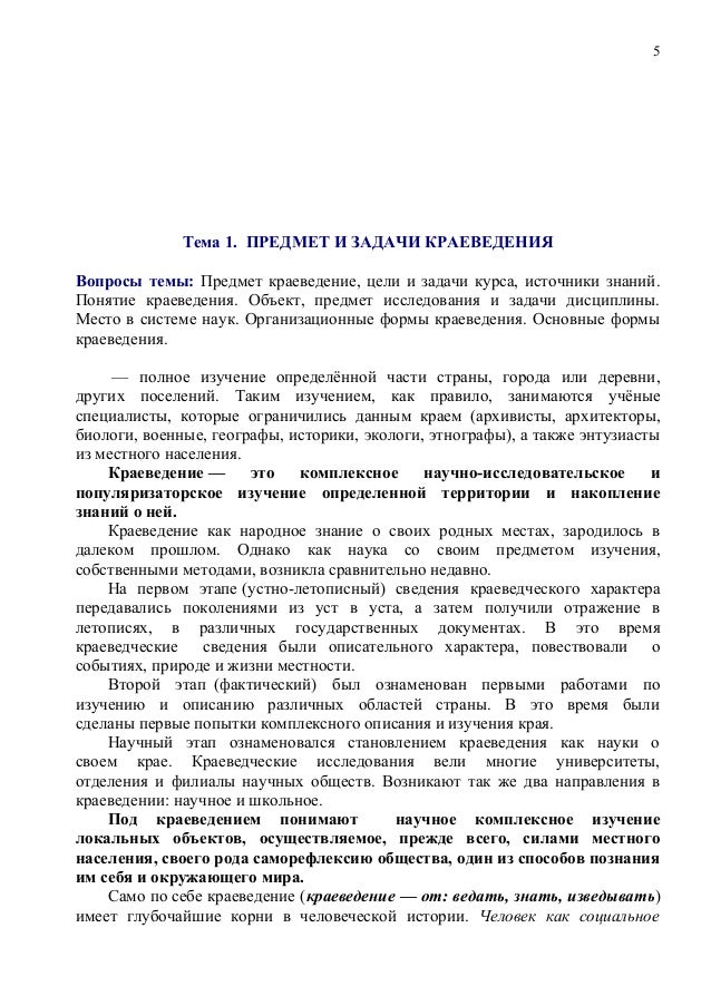 1 Предмет и задачи краеведения - СтудИзба