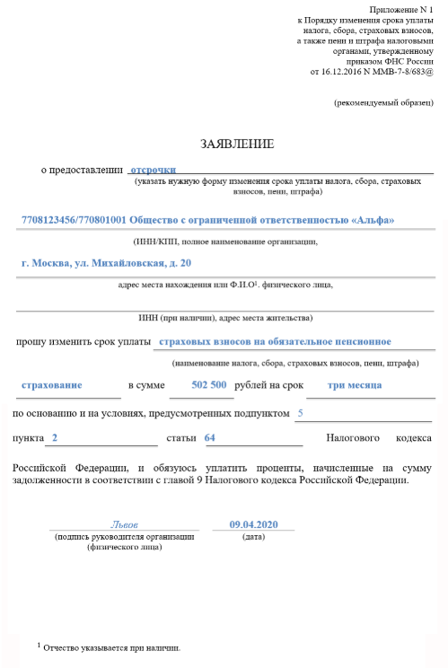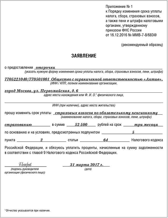Предоставление рассрочки по уплате страховых взносов