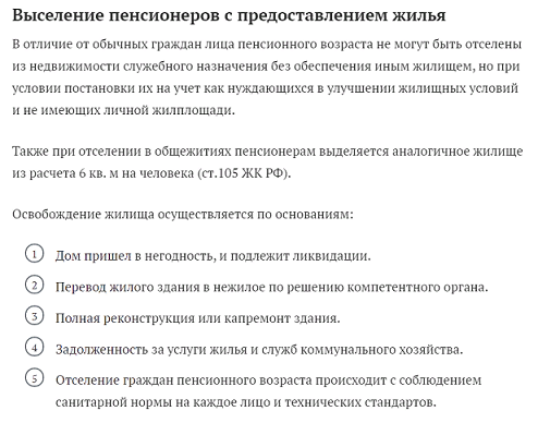 Предоставления жилья пенсионерам