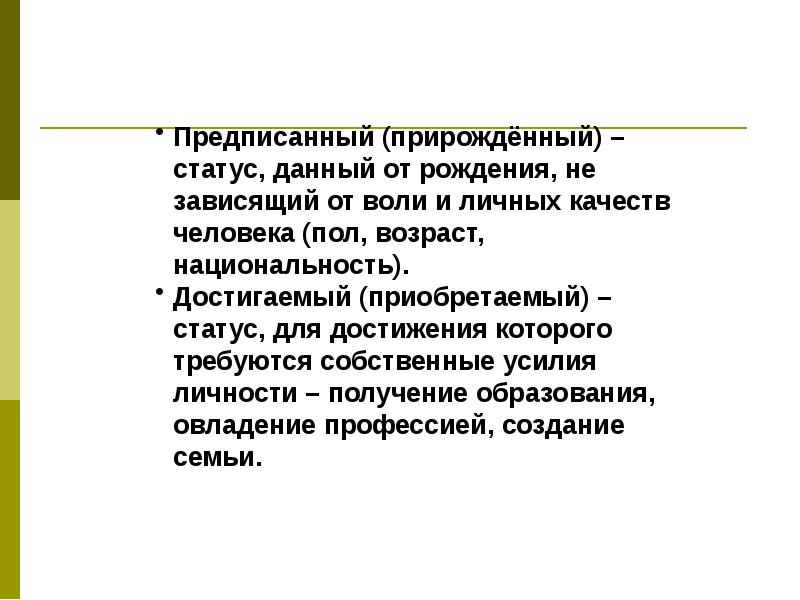 Предписанный статус признаки