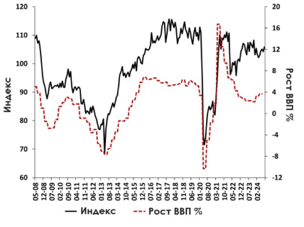 Ниже график индекса экономического настроения за последние годы.