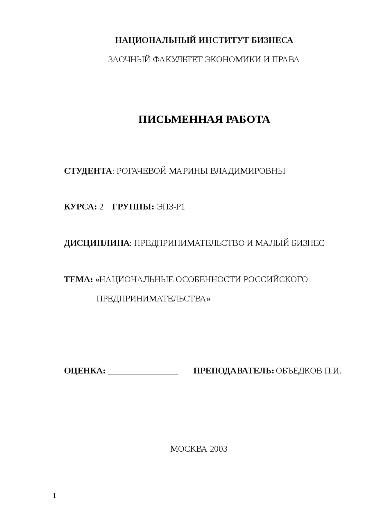Предпринимательская деятельность дипломная