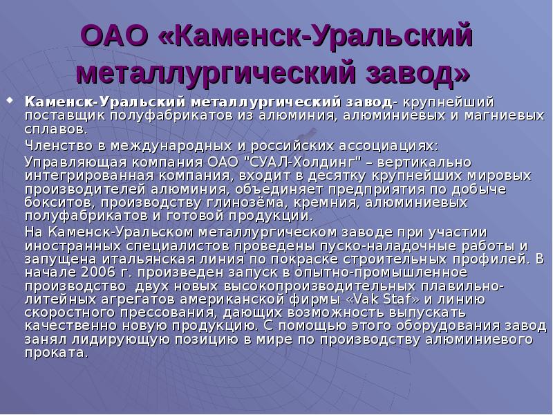 Предприятия в каменск уральском