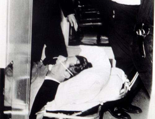 Джон Кеннеди. 35-й президент США Джон Кеннеди был убит 22 ноября 1963 года в городе Даллас (штат Техас); во время следования президентского кортежа по улицам города послышались выстрелы. Первая пуля попала президенту в шею сзади и вышла спереди из горла, вторая попала в голову и вызвала разрушение костей черепа в затылочной части, а также повреждение мозгового вещества. Президент Кеннеди был доставлен в операционную, где, спустя полчаса после покушения, констатирована его смерть. В убийстве Кеннеди был обвинен Ли Харви Освальд, который был застрелен через несколько дней в полицейском участке жителем Далласа Джеком Руби, который также впоследствии умер в тюрьме.