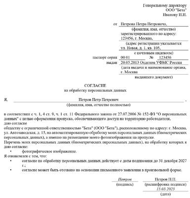Представитель субъекта персональных данных образец 143 фото