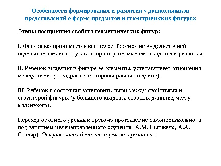 Представления формирования о форме у дошкольников