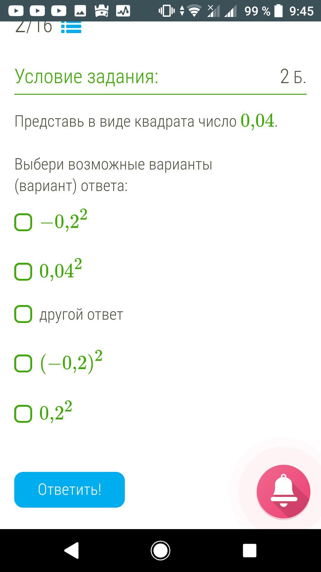 Представьте в виде квадрата число 0 0004