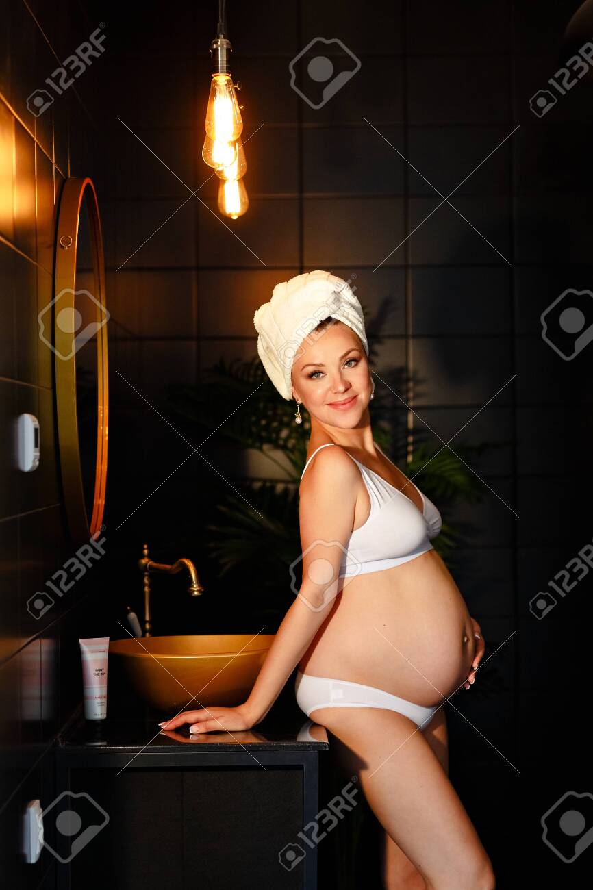 Pregnant Girl In Underwear In Shower