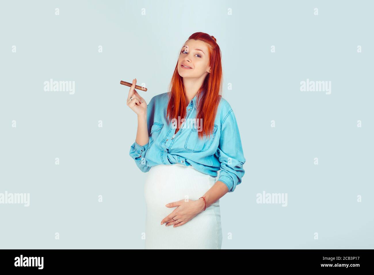 Pregnant redhead ginger playing with swollen