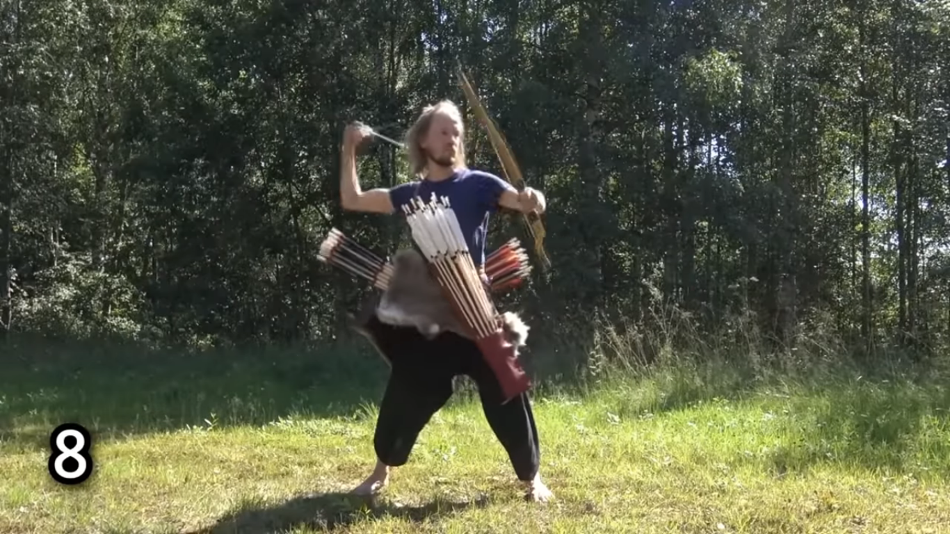 HistoryKittyЛук имеет неоспоримые преимущества. Первым из них является скорострельность. Она полностью зависит от мастерства лучника. Некоторые умудряются выпускать одну стрелу в секунду, но в целом с боевым луком она составляет примерно 10-12 стрел в минуту. На норматив "10 стрел в минуту, 7 из них должно попасть в мишень" я вышел с околонулевого уровня за два часа под руководством опытного наставника.