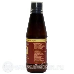 Сироп прозрачный, вязкий, от светло-желтого до коричневато-желтого цвета, без видимых частиц, со сладким вкусом . Вспомогательные вещества: вода очищенная - до 100 мл . 250 мл - флаконы полимерные (1) в комплекте с мерным стаканчиком - пачки картонные . Фармакологическое действие Слабительное средство .
