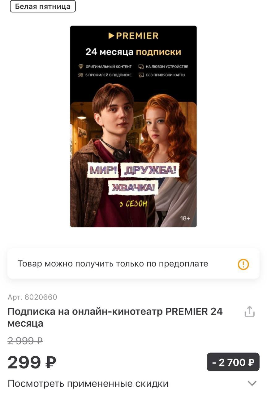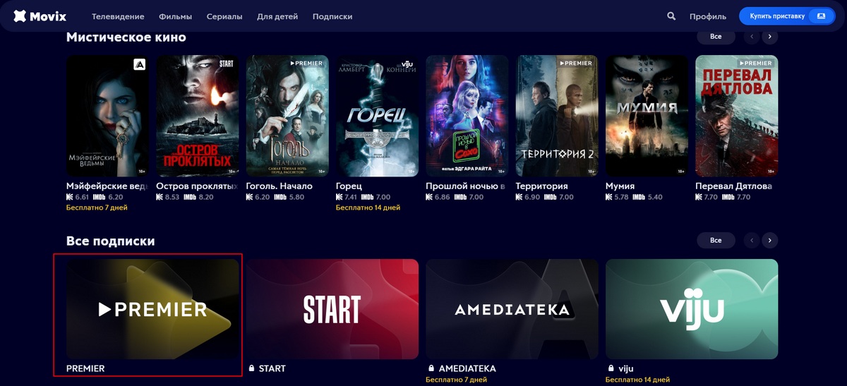 Премьер в какой пакет входит