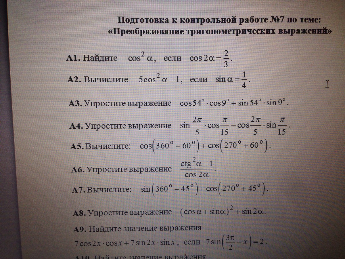 Преобразование числовых тригонометрических выражений 104 фотографий