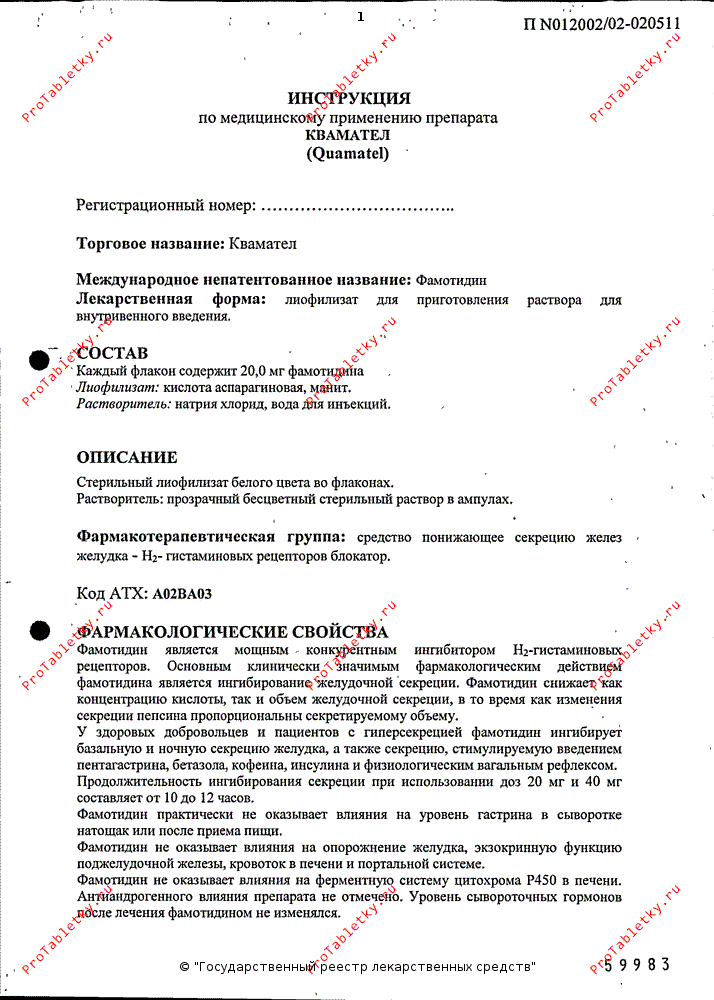 Препарат Квамател Показания
