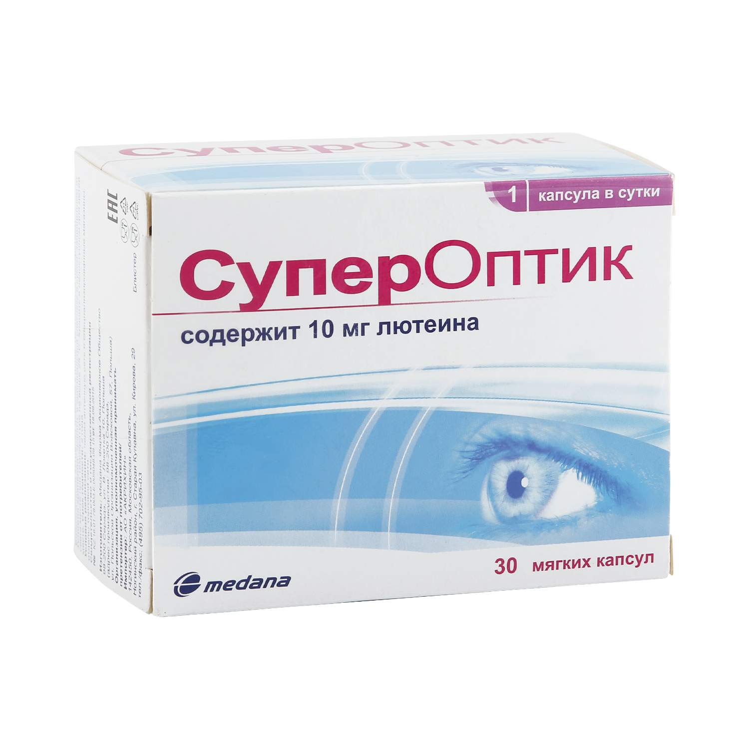 СуперОптик, инструкция по применению: способ и дозировка Капсулы СуперОптик следует принимать внутрь во время еды, не рассасывая и не разжевывая, запивая достаточным количеством воды . Рекомендуемая дозировка - по 1 капсуле 1 раз в сутки . Побочные действия Информация не предоставлена производителем . Передозировка