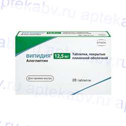 Випидия - лекарственный препарат, предназначенный для лечения сахарного диабета II типа в виде монотерапии или в составе комплексного лечения в комбинации с другими сахароснижающими препаратами . Алоглиптин относится к группе принципиально новых веществ, применяющихся для лечения сахарного диабета II типа, которая носит название инкретиномиметики .