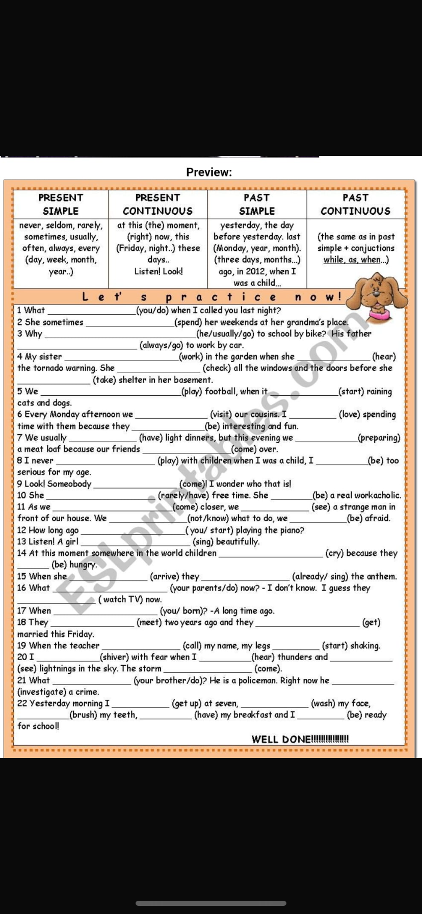 Present simple past simple present continuous game