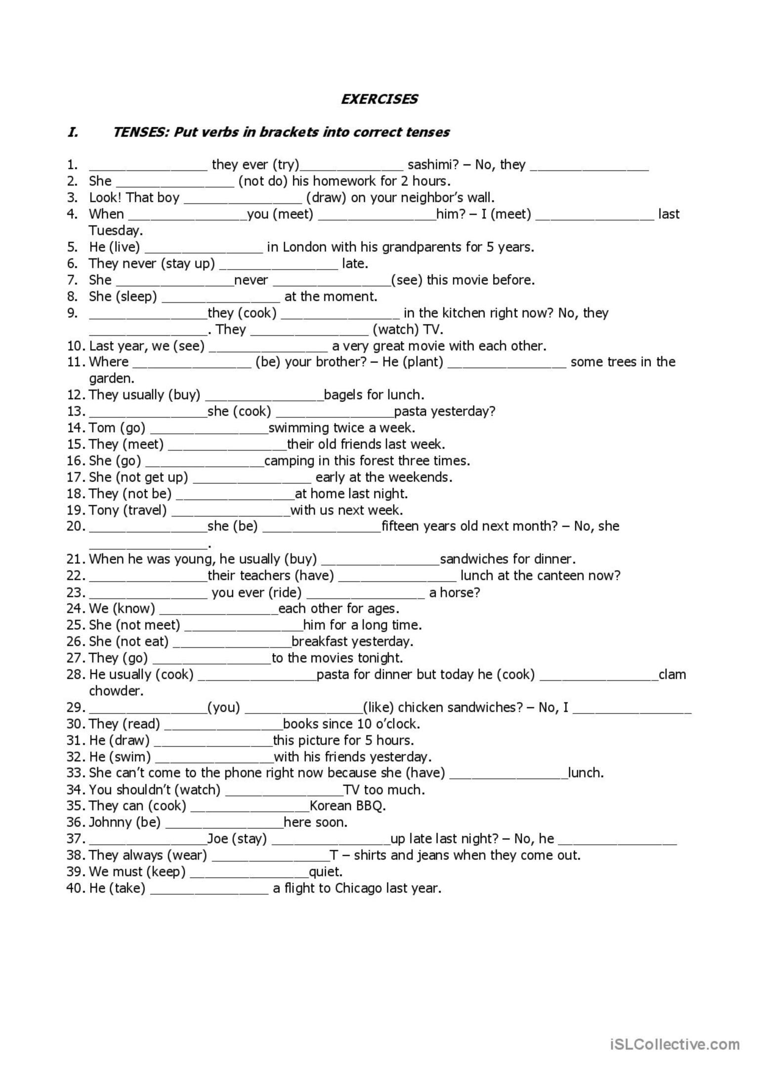 Present tenses intermediate exercises