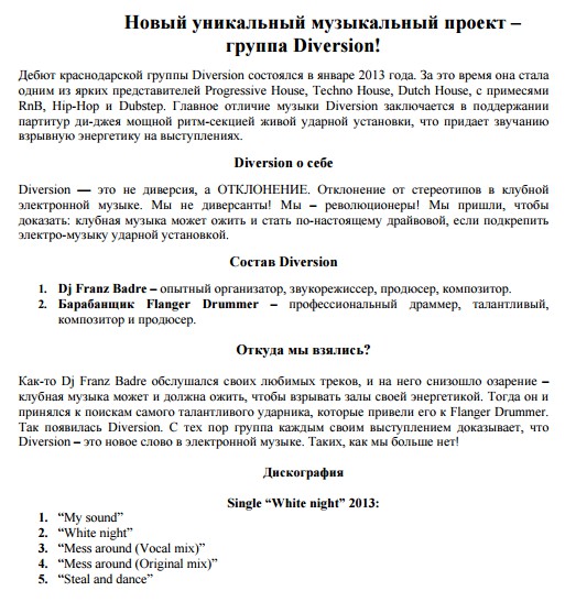 Пресс релизы групп
