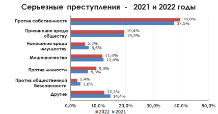 В 2022 году уровень преступности достиг 584 инцидентов на 100 000 населения. В 2021 году этот показатель составлял 501, а в 2020 году – 482.