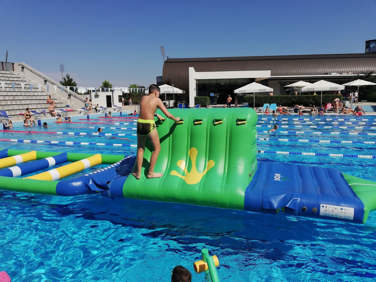 Бассейн - это немного воды в толпе людей . Знаменитый спортсмен установил мировой рекорд нахождения под водой . Встретилась сегодня в бассейне со своей старой подругой . Мы так развизжались, что даже спасатель прибежал, потому что решил, что кто-то тонет .
