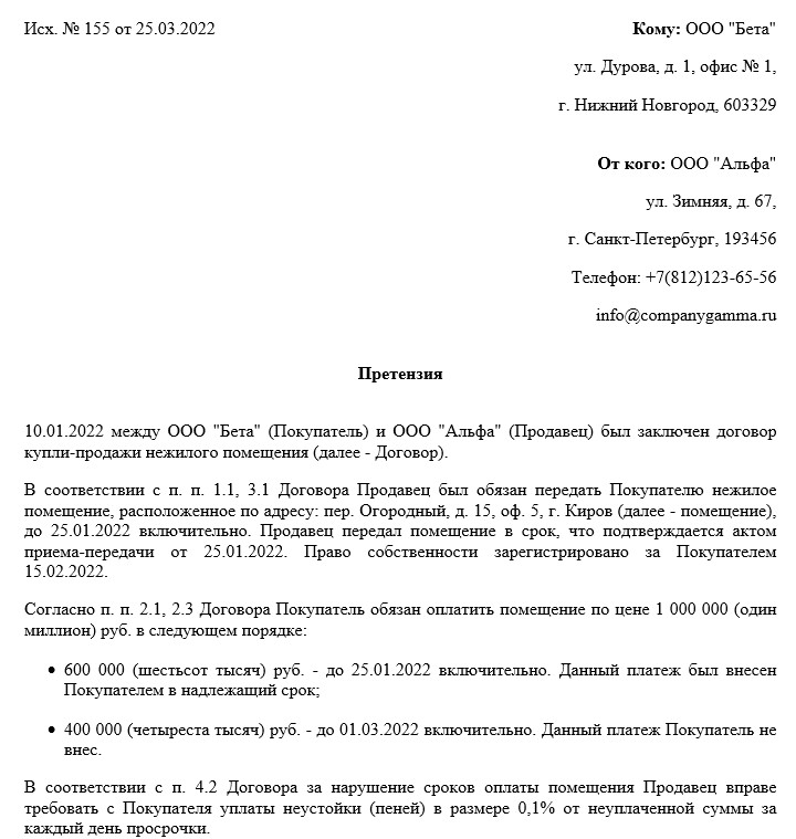 Претензия арбитражный процесс
