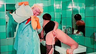 Blond bent over on the floor and fucked hard in her slit