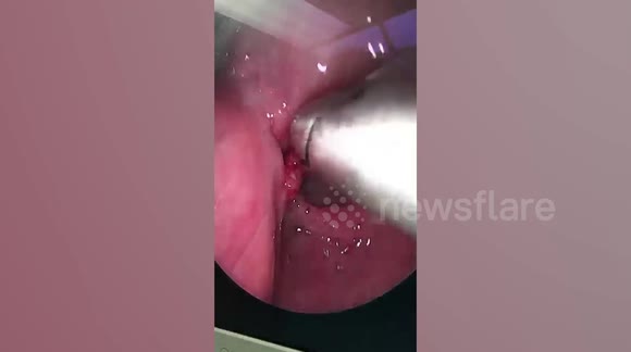 Pretty girls throat endoscope while swallowing