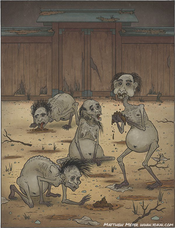 Преты обитают в наиболее любимых местах ведьм и приведений – на перекрестках. Мифология гласит, что преты любят собираться на границах человеческих владений у заборов и ограждений. Их сущность подавлена неутолимой жаждой насыщения и алчностью. Они видят миражи лучшей пищи, которая в итоге оказывается грудами камней или земли. Именно алчность сделала их образы невероятно уродливыми.