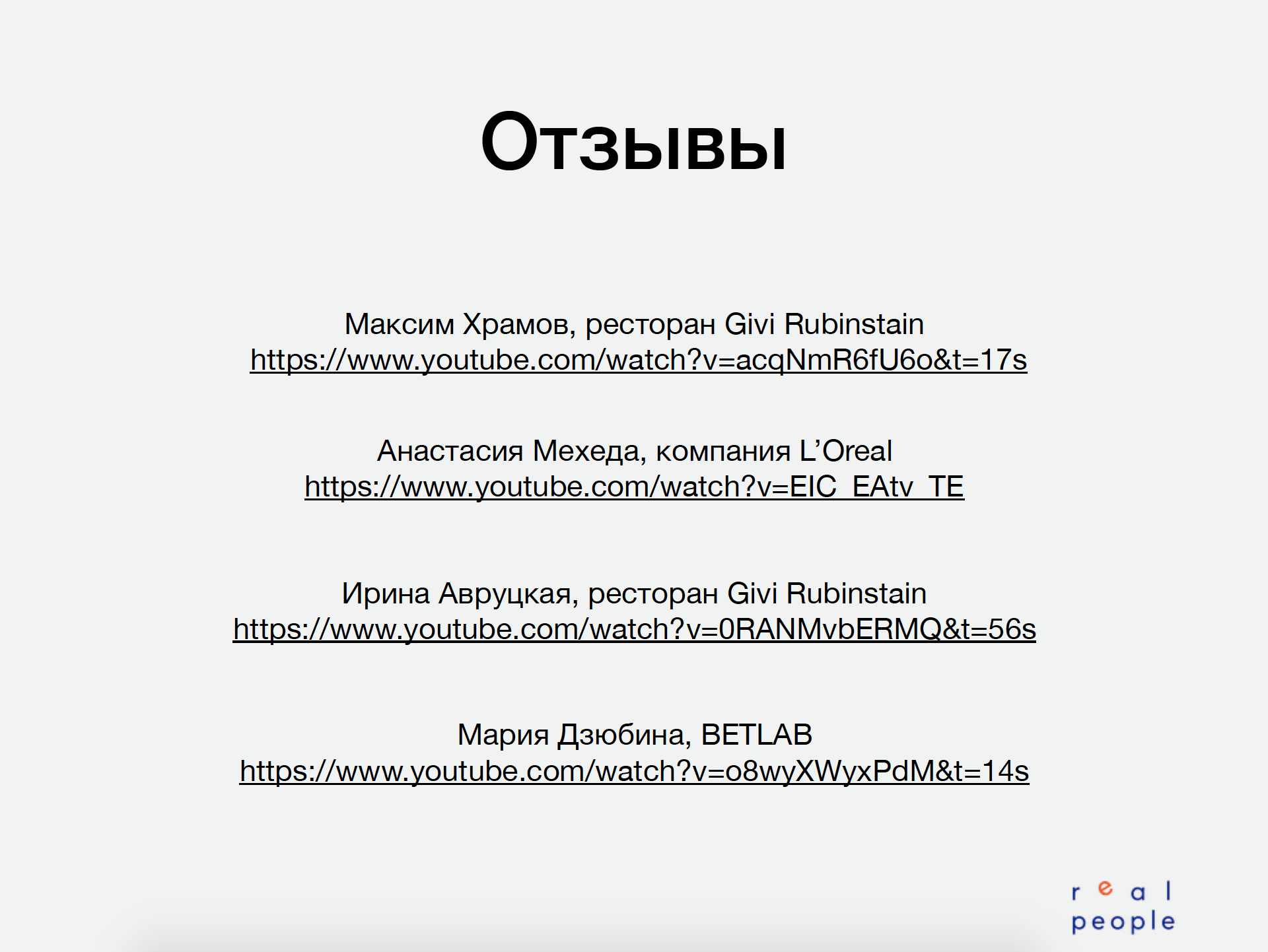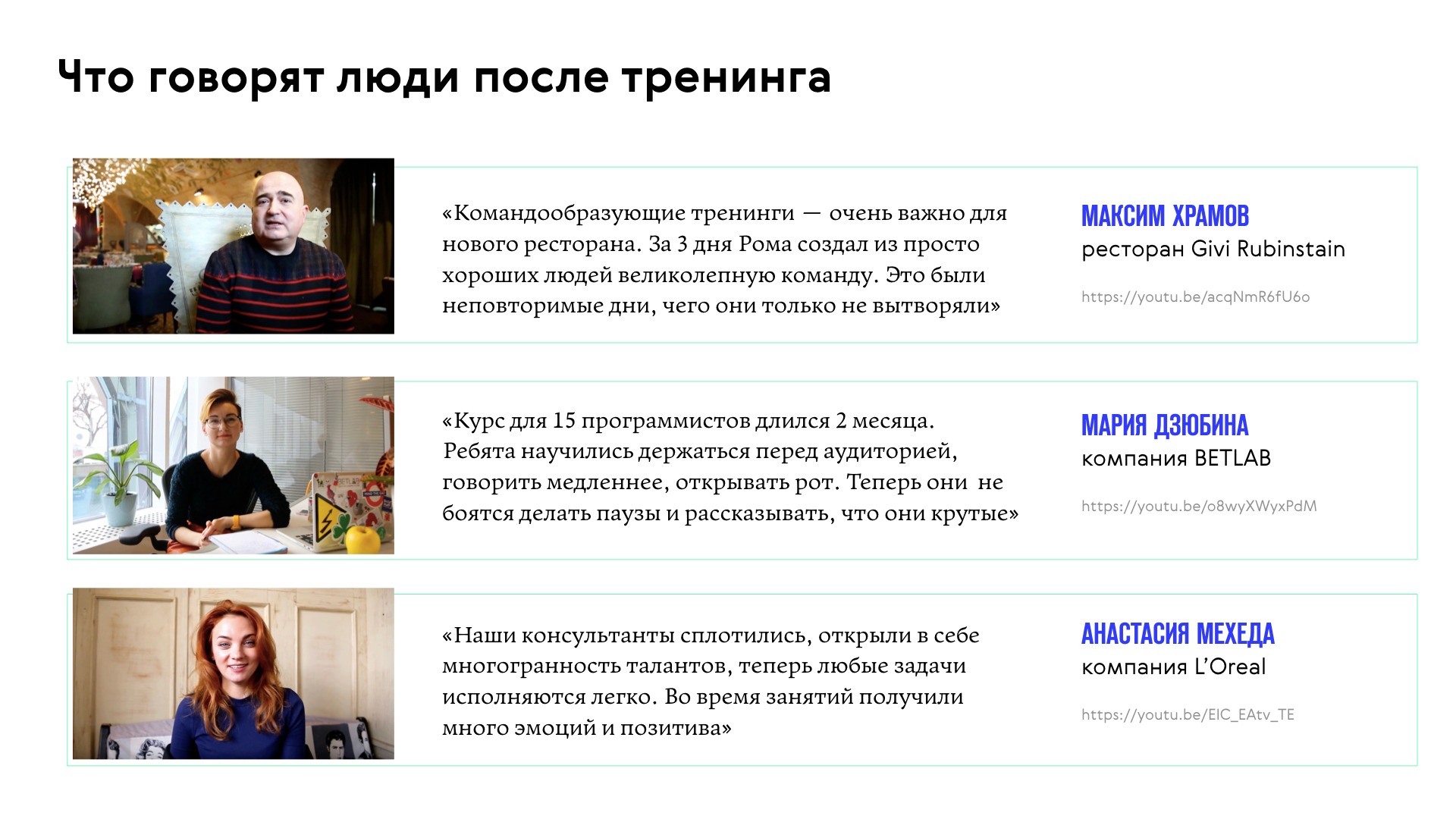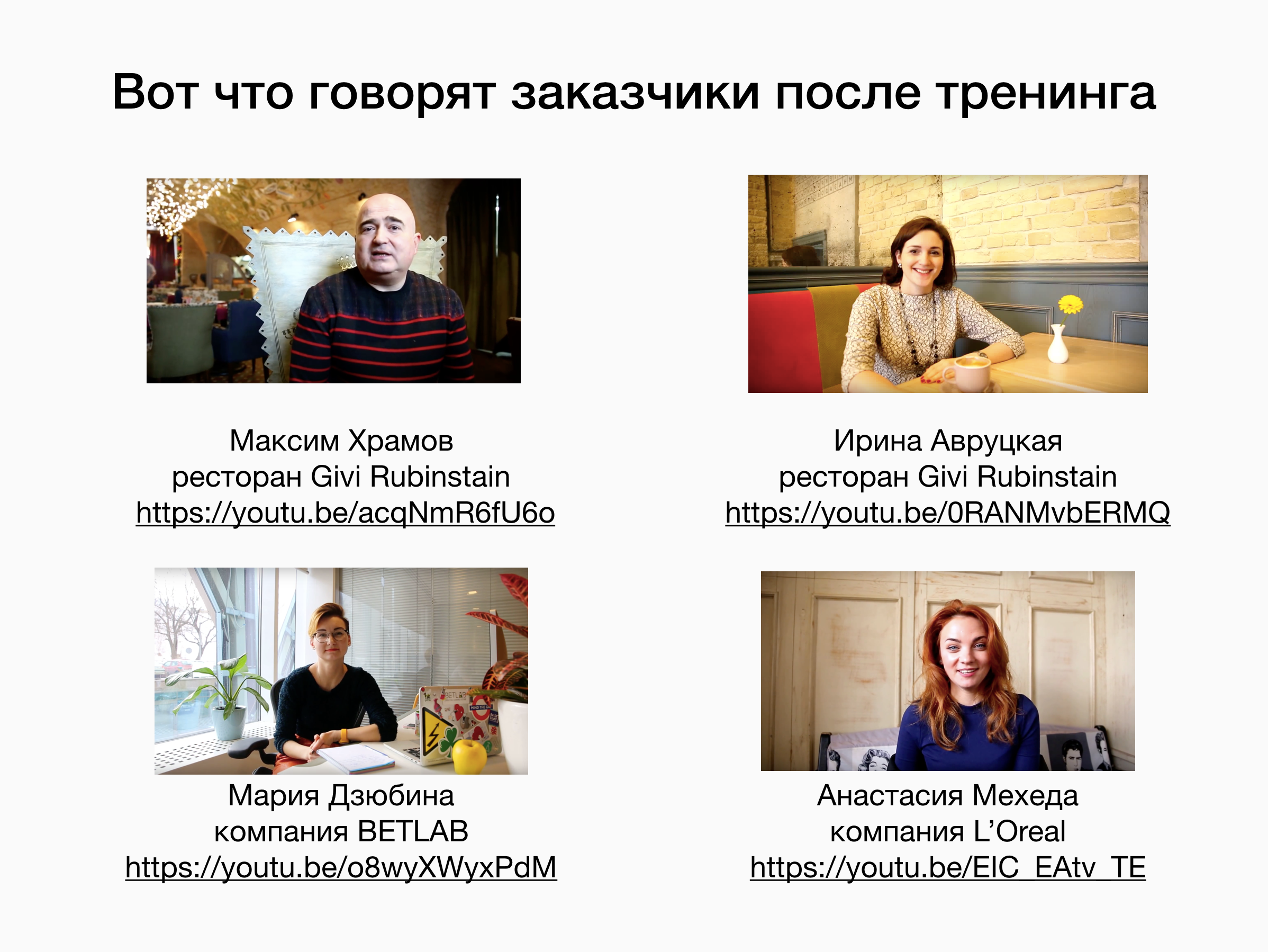 - Выписала цитаты клиентов из видео-отзывов — потому что почти никто не клацает на те ссылки. Очень мало людей делают это.