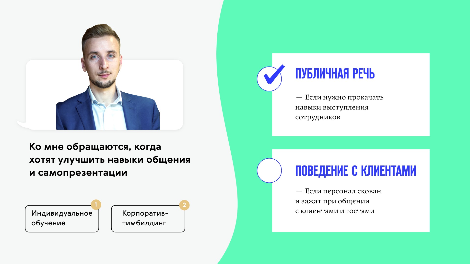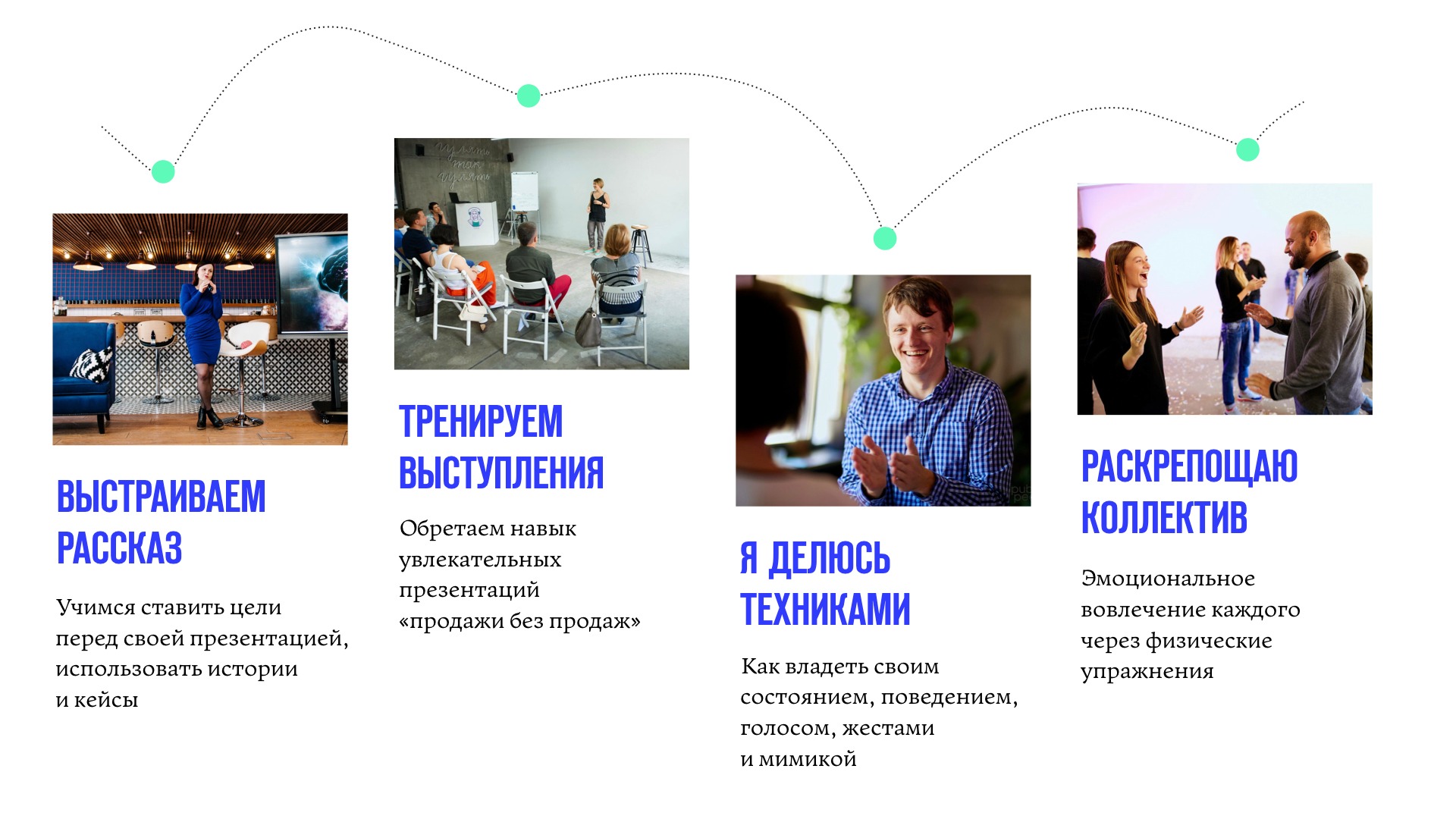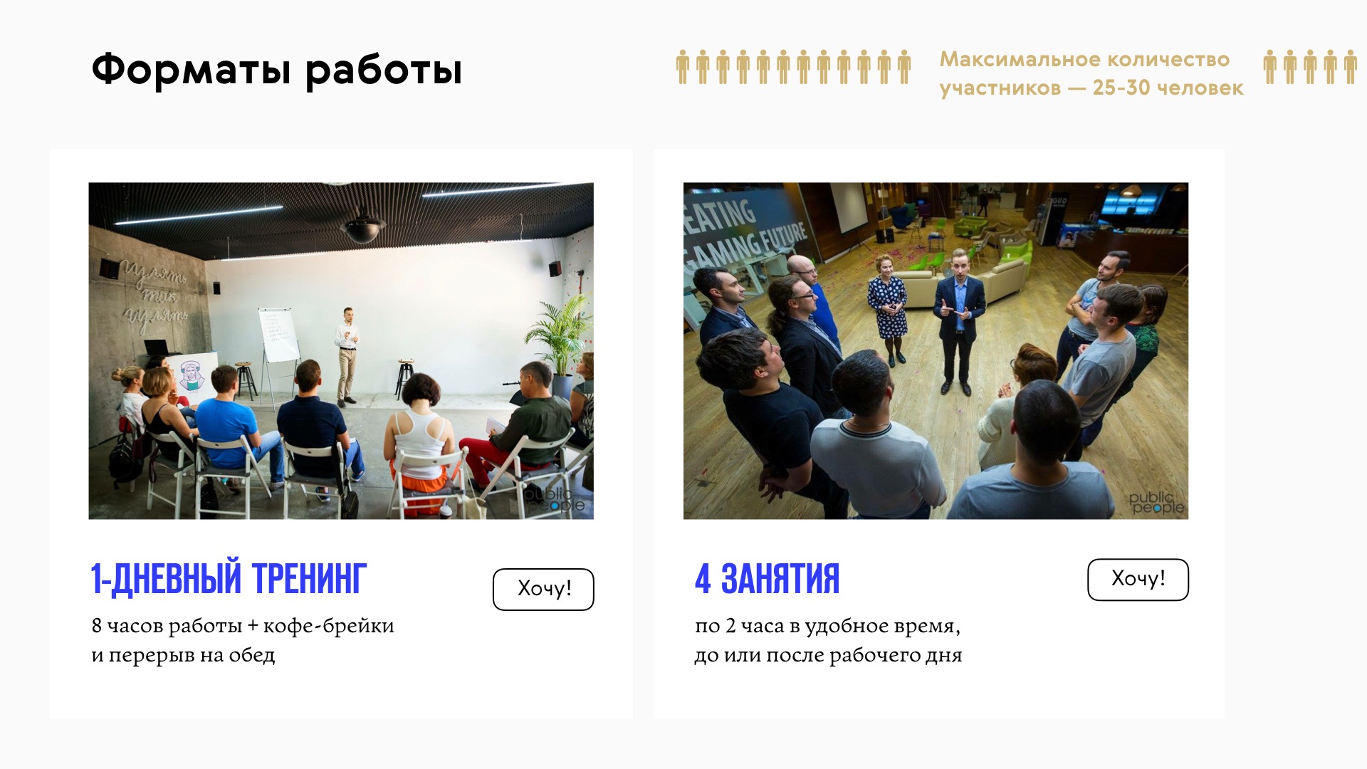 - Добавил эмоции. После первых важных слайдов о сути услуги, на мой взгляд, обязательно должна быть вишня на торт. Вообще, услуга Ромы — это весело: люди собираются на несколько часов, играют разные сценки, узнают друг друга и всячески резвятся. Об этом очень важно сказать.