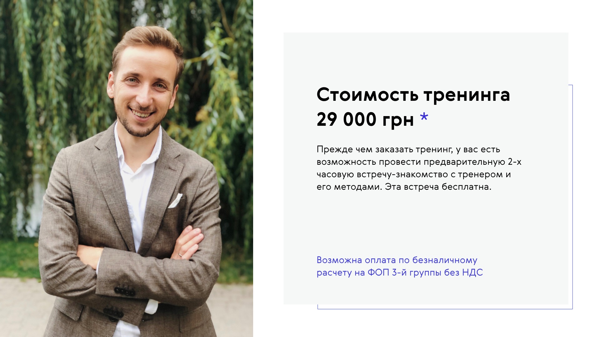 - Поставила дружелюбное фото на слайде с ценой. Всегда приятнее отдавать свои деньги кому-то, кто умеет проявлять эмоции.
