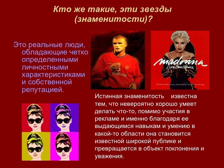 Презентация Знаменитости