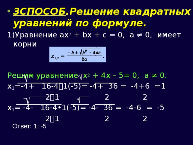 Презентация решение квадратных уравнений по формуле 116 фотографий