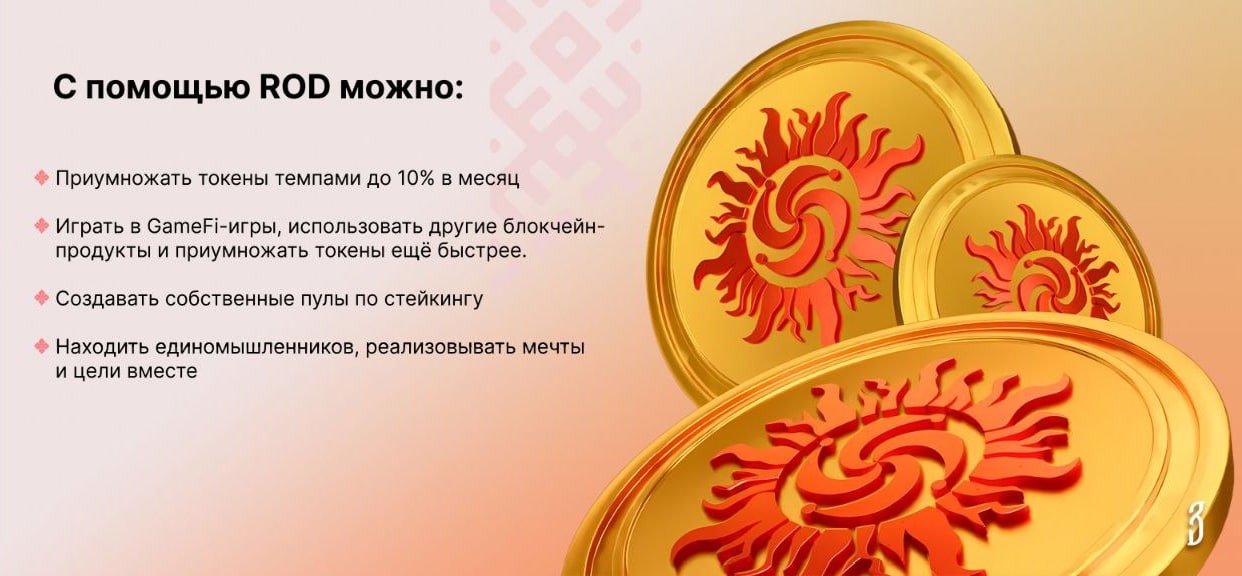 Токен ROD предлагает пользователям продуманный стейкинг, позволяет всем желающим создавать свои собственные стейкинг-пулы для любых целей и открывает широкие возможности для развития. Каждый пул — это отдельная вселенная со своими GameFi и другими полезными продуктами и решениями!