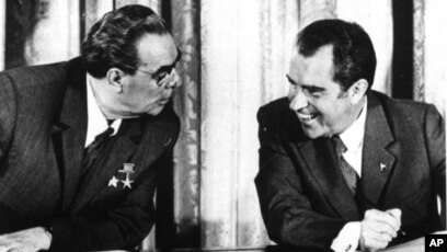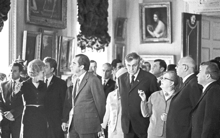 Вице-президент . Ричард Никсон на самой высокой точке (200 м) Днепровских склонов в 1972 году . Фото А . Т . Бормотова . Ричард Никсон на пресс-конференции, посвящённой началу . . .