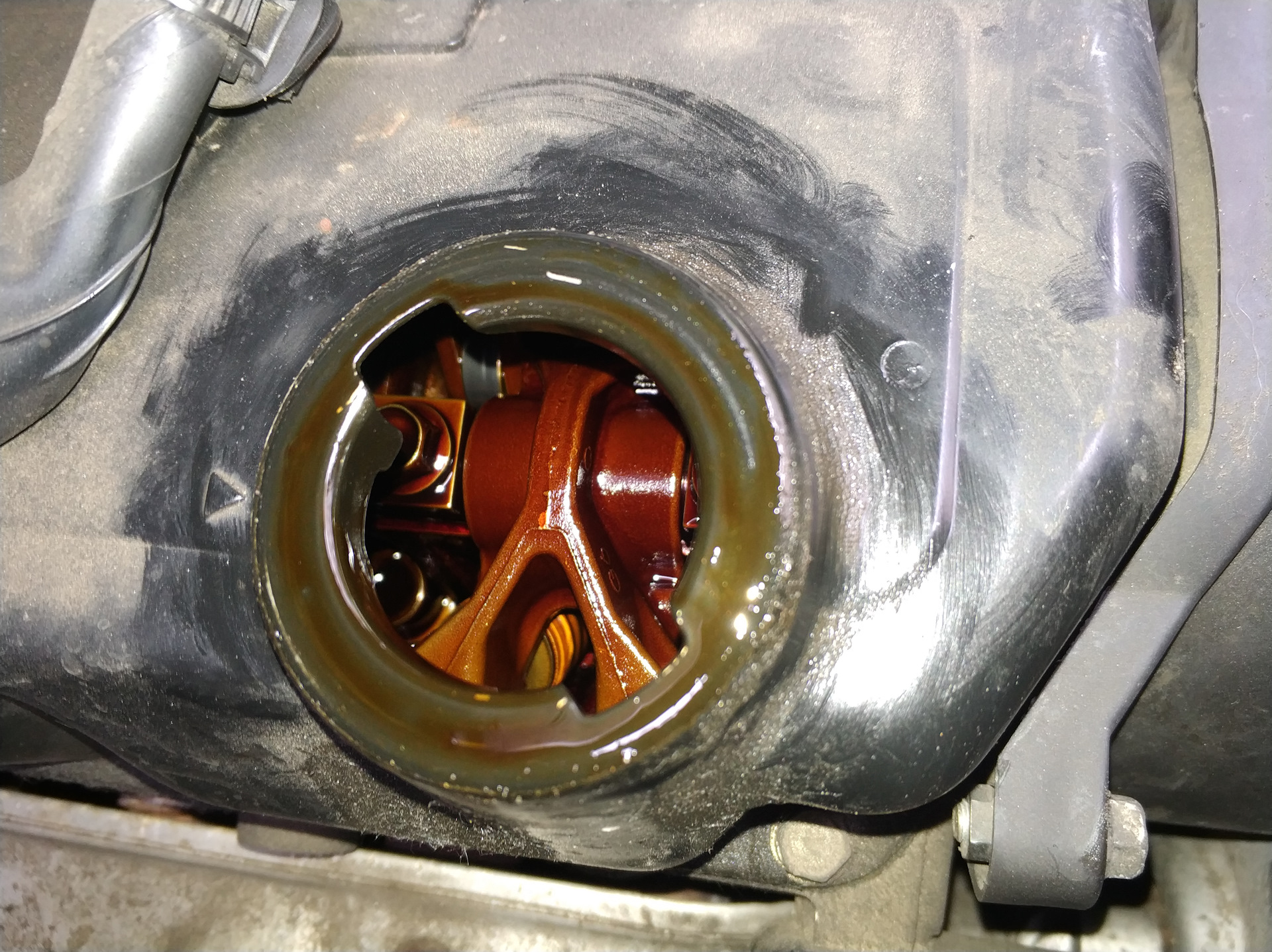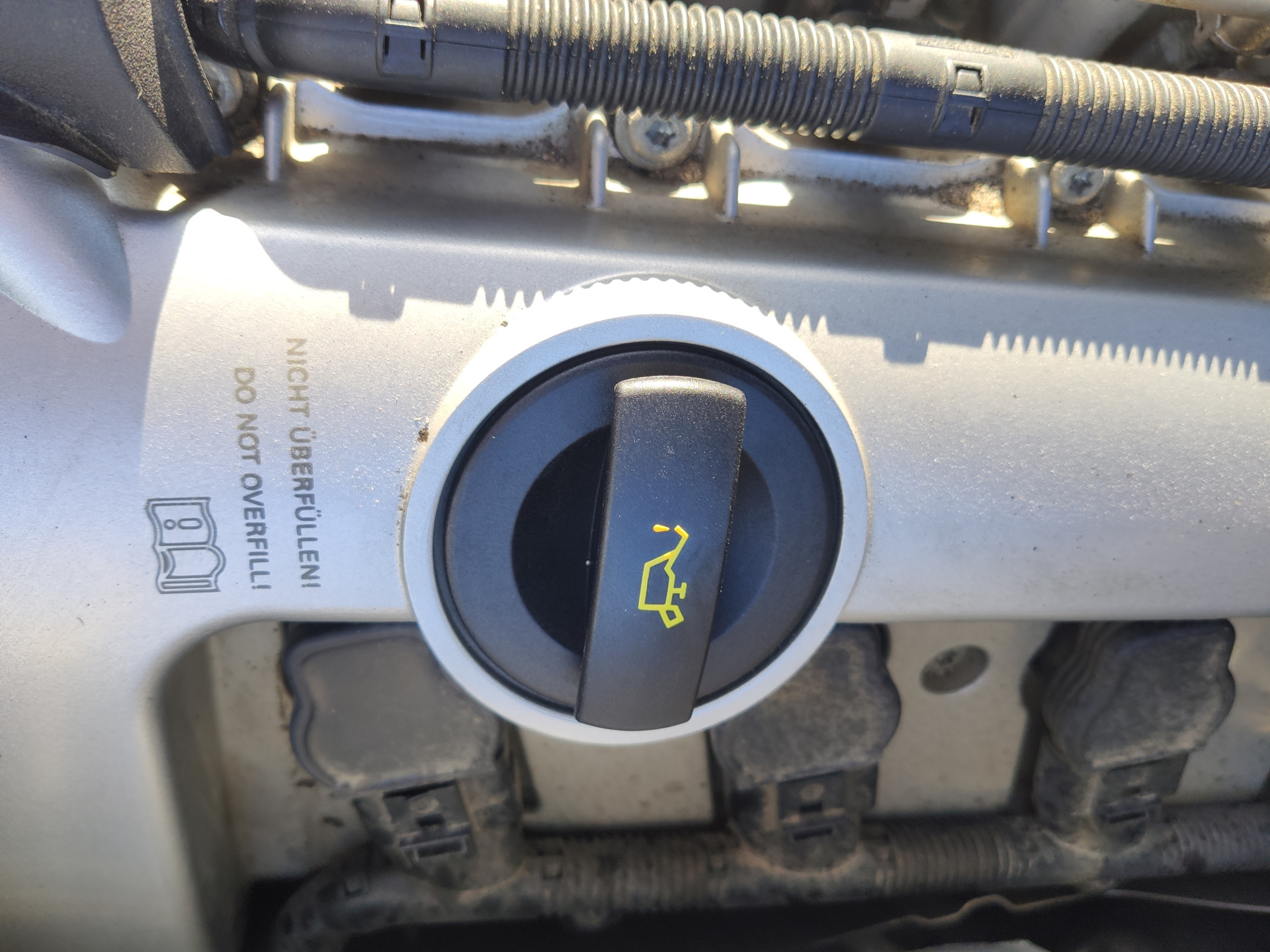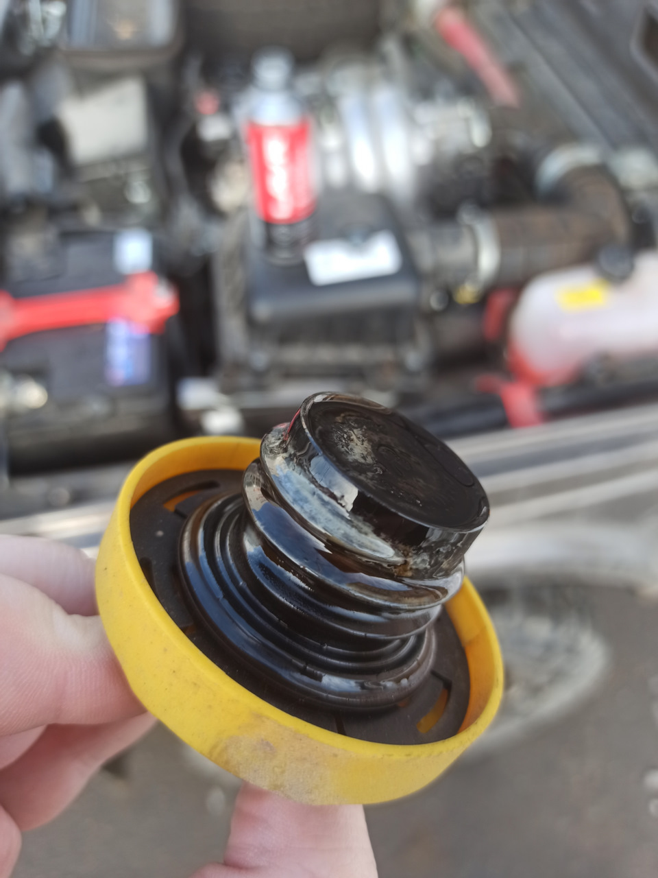 При открытой крышки масла двигателя