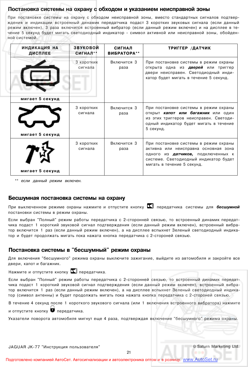 При постановки на охрану срабатывает сигнализация