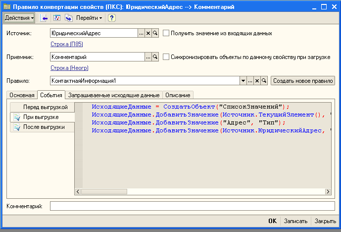 При записи обработчик 1с
