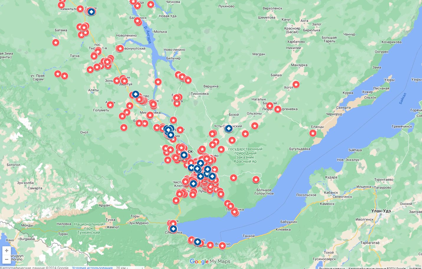 Приангарье на карте