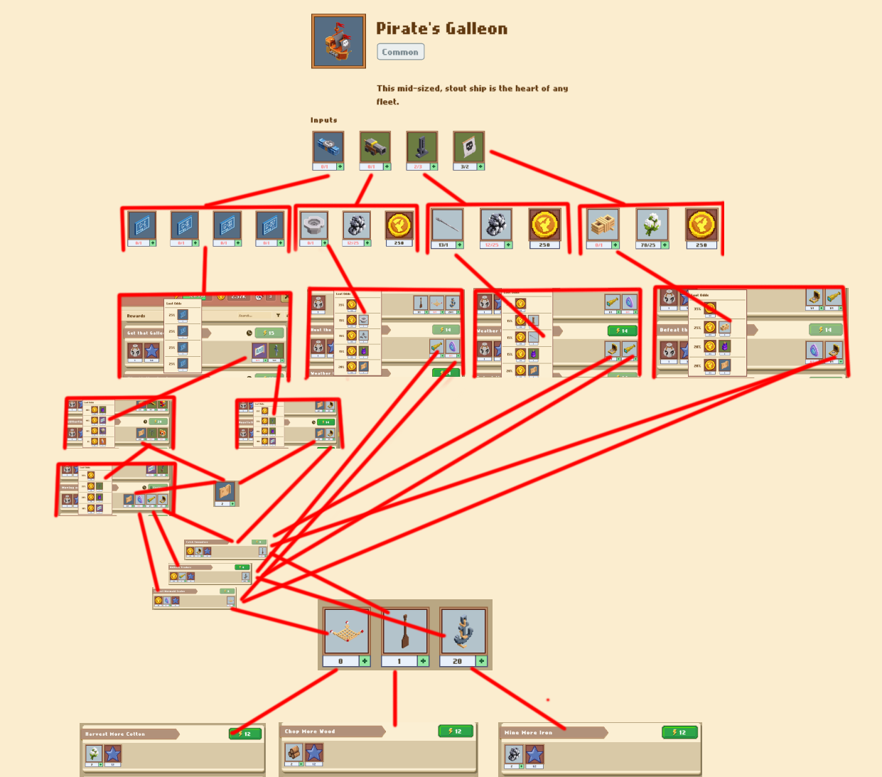 НАПРИМЕР: мы хотим собрать корабль, галеон. По рецепту который доступен нам в столе крафта мы можем посмотреть ингридиенты...