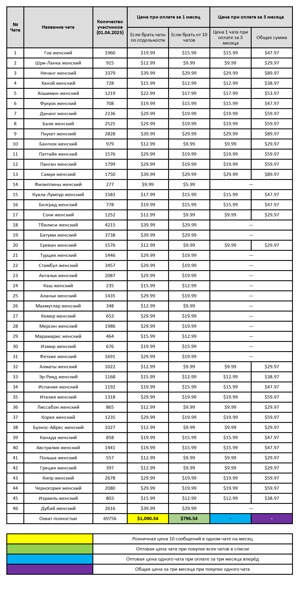 Также можете ознакомиться с ценами на другие чаты