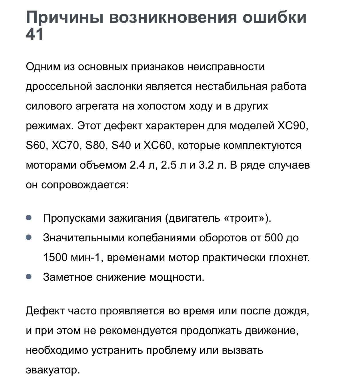 Причина неисправности вольво