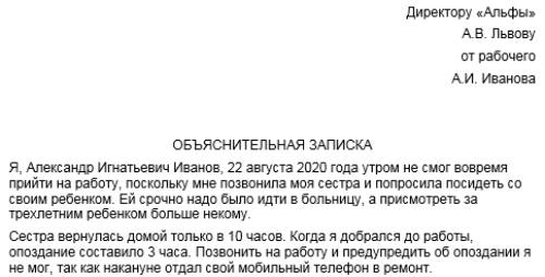 Причина опоздания в школу объяснительная