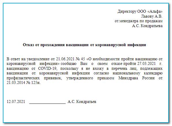 Причина отказа от госпитализации