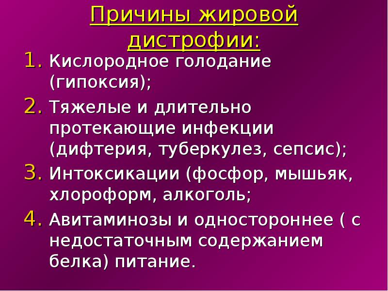 Причина жировых дистрофий