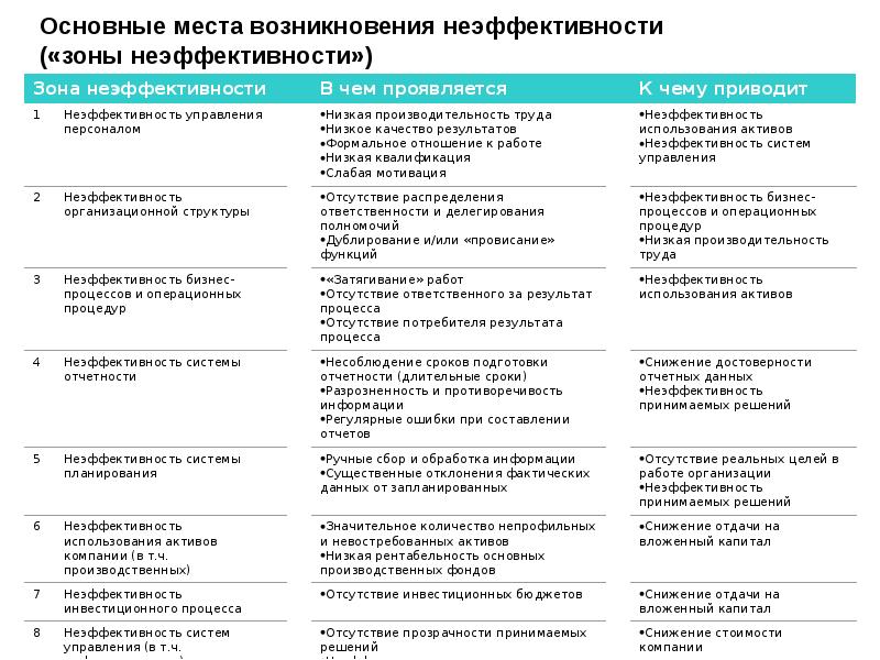 Причины х неэффективности