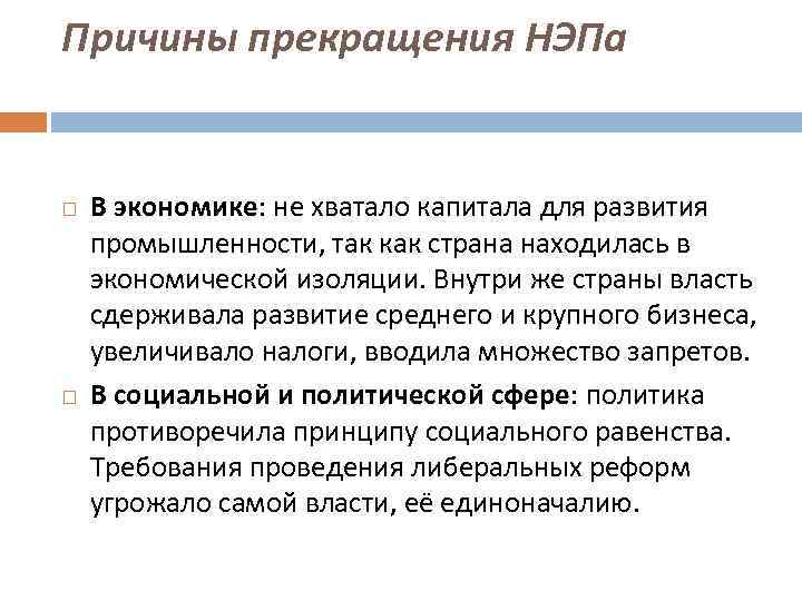 Причины прекращения нэпа 103 фото